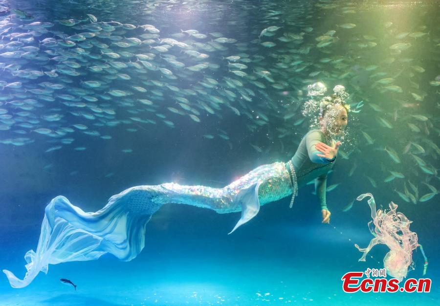 A diver dressed as a mermaid performs to celebrate the upcoming Spring Festival at Nanjing Underwater World in east China's Jiangsu Province, Jan. 20, 2024. (Photo: China News Service/Yang Bo)