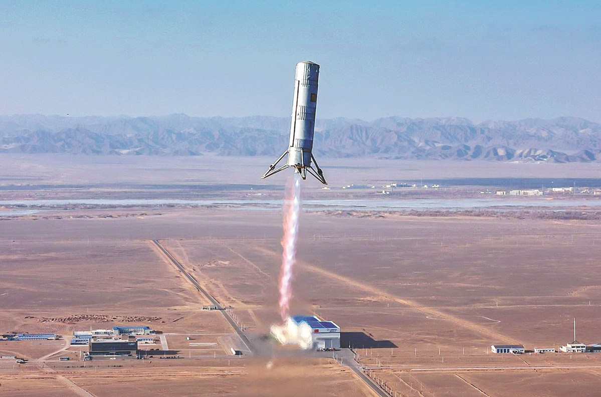 A prototype of the ZQ 3 reusable carrier rocket undergoes a test at the Jiuquan Satellite Launch Center in northwestern China's Gobi Desert on Friday. CHINA DAILY