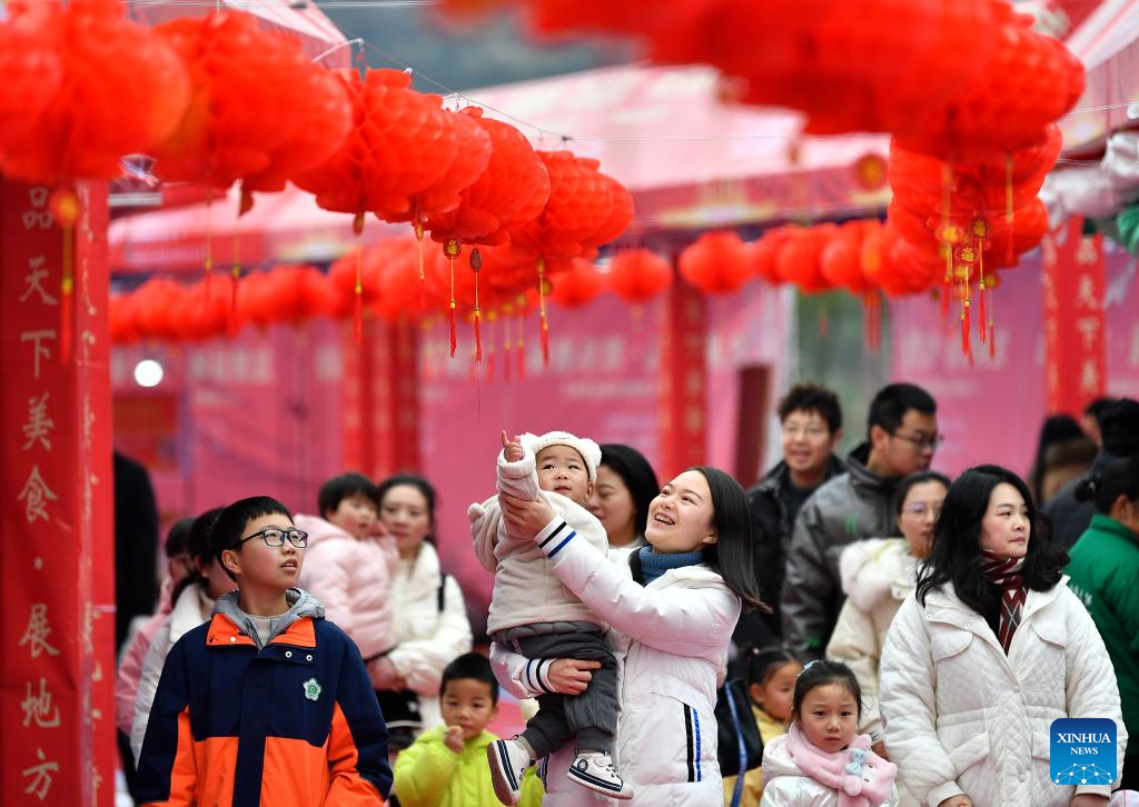 People visit a Spring Festival fair in Guang'an City, southwest China's Sichuan Province, Jan. 23, 2024. Various events are held across the country in celebration of the upcoming Chinese Lunar New Year, which falls on Feb. 10 this year. (Photo by Zhang Qifu/Xinhua)