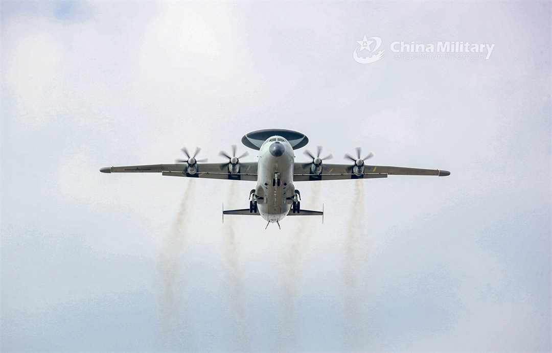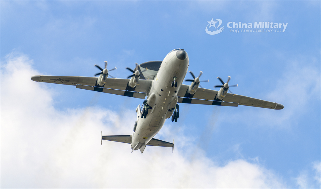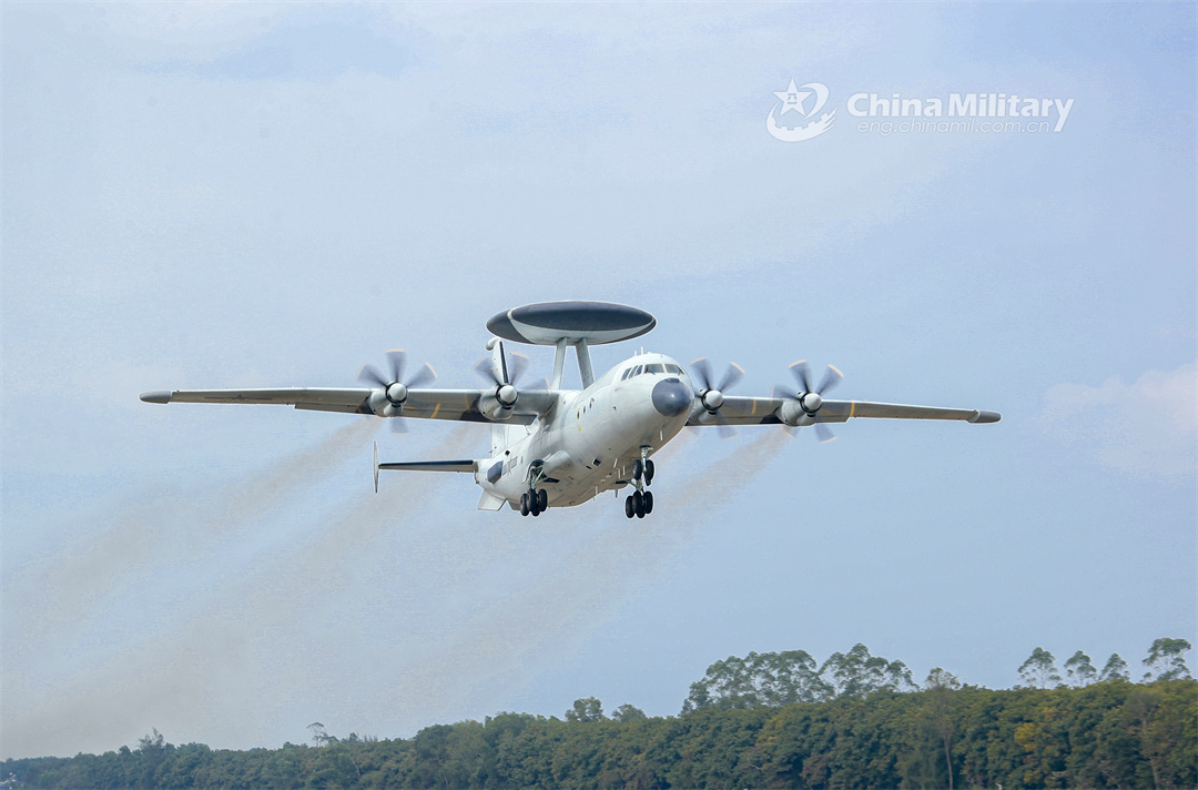 An airborne early warning (AEW) aircraft attached to a naval aviation unit under the PLA Southern Theater Command soars into the sky during a flight training exercise on January 10, 2024. (eng.chinamil.com.cn/Photo by Liu Kai)