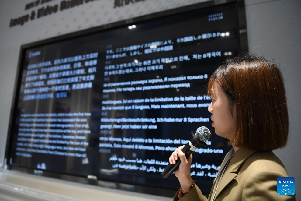 A staff member demonstrates the intelligent translating system at the iFLYTEK Co. Ltd. in Hefei, east China's Anhui Province, Jan. 19, 2024. (Xinhua/Zhang Duan)