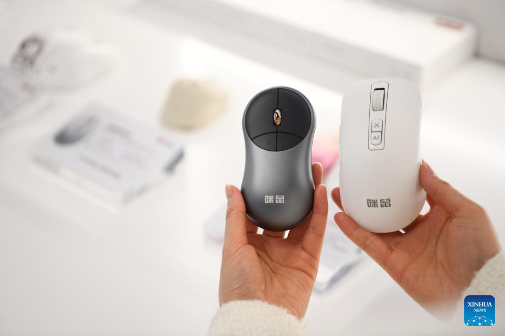 A staff member demonstrates smart mouses at the MiMouse, a high-tech company, in Hefei, east China's Anhui Province, Jan. 22, 2024. (Xinhua/Zhang Duan)