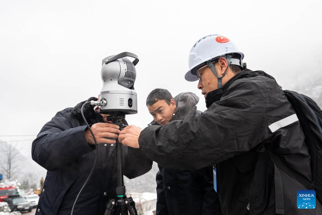 People install rescue equipment in Liangshui Village, Tangfang Town, Zhenxiong County, southwest China's Yunnan Province, Jan. 24, 2024. The death toll from a landslide that struck a mountainous village in southwest China's Yunnan Province on Monday had climbed to 34 as of 5 p.m. Wednesday, local authorities said. Another 10 people are still missing, according to the local disaster relief headquarters. (Xinhua/Hu Chao)
