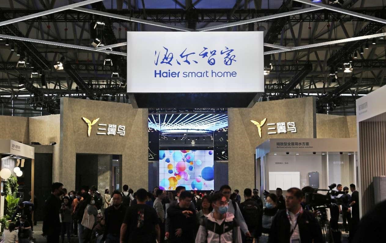 Photo taken on April 27, 2023 shows the exhibition booth of Haier smart home at the Appliance & Electronics World Expo in Shanghai. (People's Daily Online/Chen Yuyu)