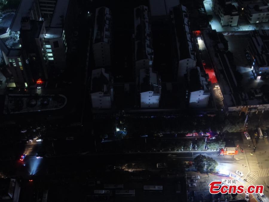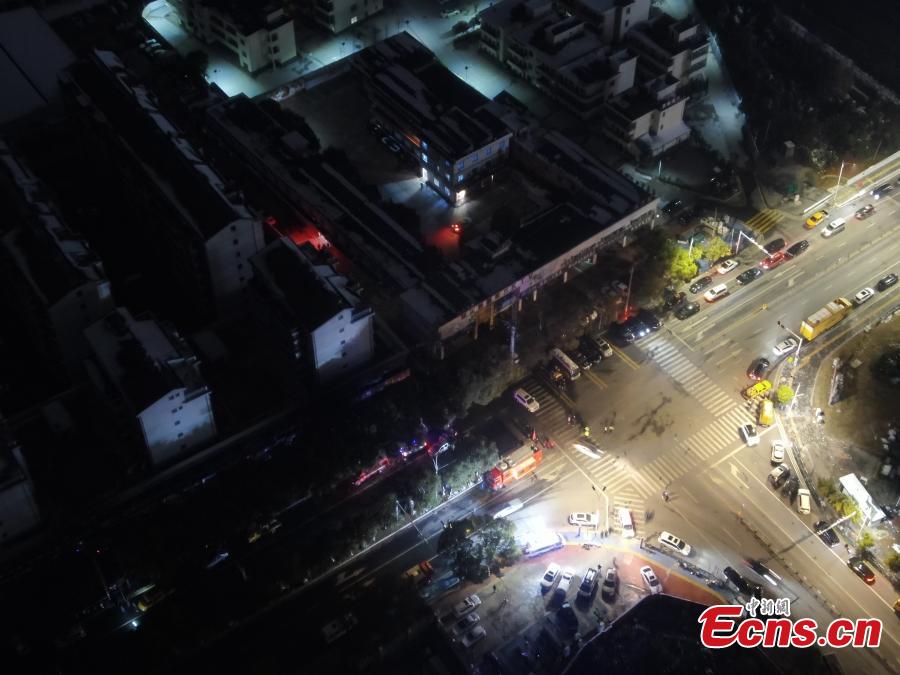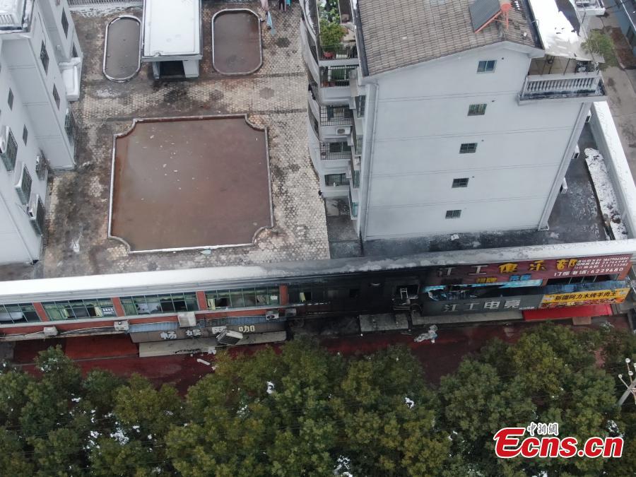 Aerial view of the site after a building fire in Xinyu, east China's Jiangxi Province, Jan. 25, 2024. (Photo: China News Service/Liu Lixin)