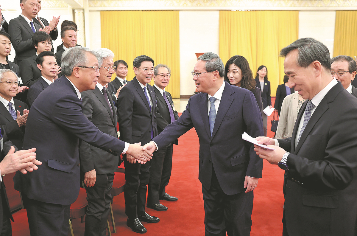 Premier Li Qiang meets on Thursday with a delegation of Japanese business leaders in Beijing. FENG YONGBIN/CHINA DAILY