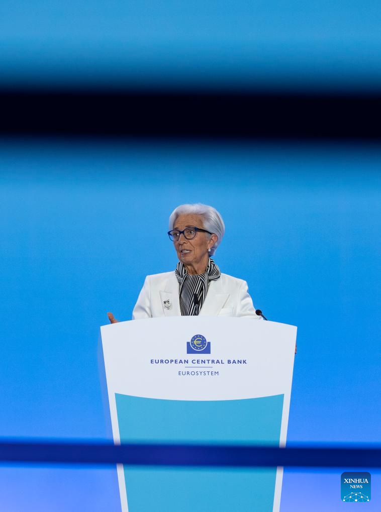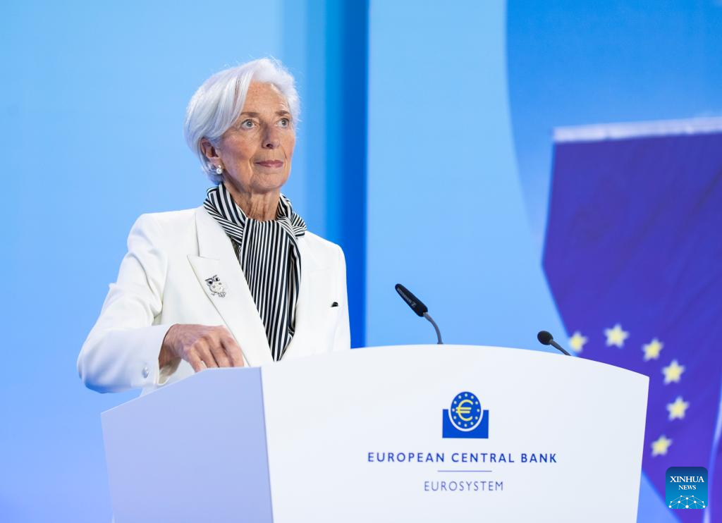 European Central Bank (ECB) President Christine Lagarde is pictured before a press conference in Frankfurt, Germany, Jan. 25, 2024. (Xinhua/Zhang Fan)