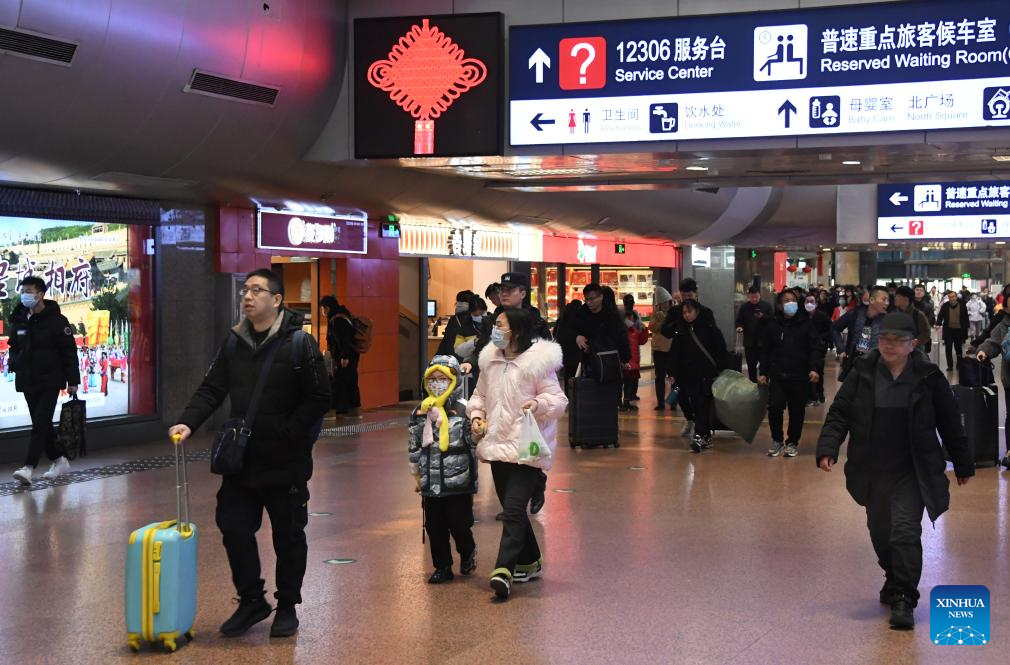 Passengers are seen at Beijing West Railway Station in Beijing, capital of China, on Jan. 26, 2024. (Xinhua/Ren Chao)