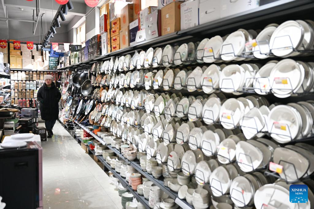 A customer shops at a supermarket in Akqi County, northwest China's Xinjiang Uygur Autonomous Region, Jan. 26, 2024. Most shops, supermarkets and other commercial facilities have resumed operation, and local people's life are returning to normal in an orderly manner in Akqi County. A 7.1-magnitude earthquake jolted Wushi County in Aksu Prefecture in northwest China's Xinjiang Uygur Autonomous Region on Jan. 23. Akqi, which is adjacent to Wushi, also suffered heavily from the quake. (Xinhua/Li Xiang)