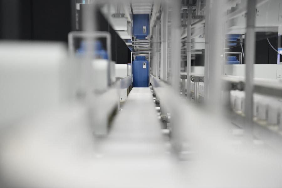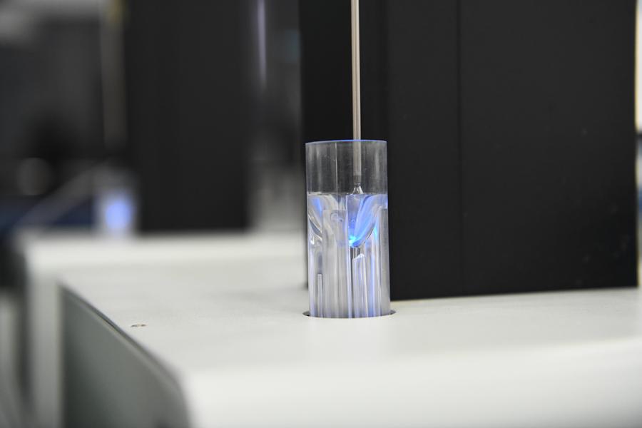 An automatic water testing system operates at Anhui CAS Intelligent Environmental Testing Technology Service Co., Ltd. in the China Environment Valley in Hefei, east China's Anhui Province, Jan. 17, 2024. (Xinhua/Zhang Duan)