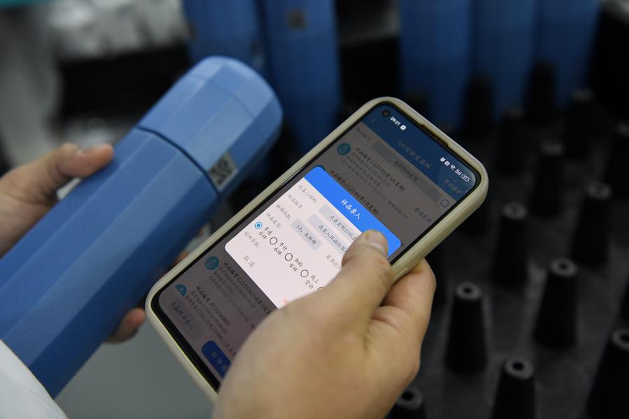 A staff member operates an automatic water testing system at Anhui CAS Intelligent Environmental Testing Technology Service Co., Ltd. in the China Environment Valley in Hefei, east China's Anhui Province, Jan. 17, 2024. (Xinhua/Zhang Duan)