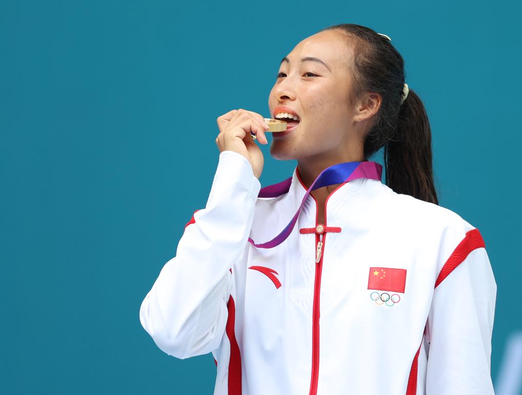 Zheng attends the awarding ceremony after winning the tennis women's singles title at the 19th Asian Games in Hangzhou, east China's Zhejiang Province, Sept. 29, 2023. (Xinhua/Jia Haocheng)
