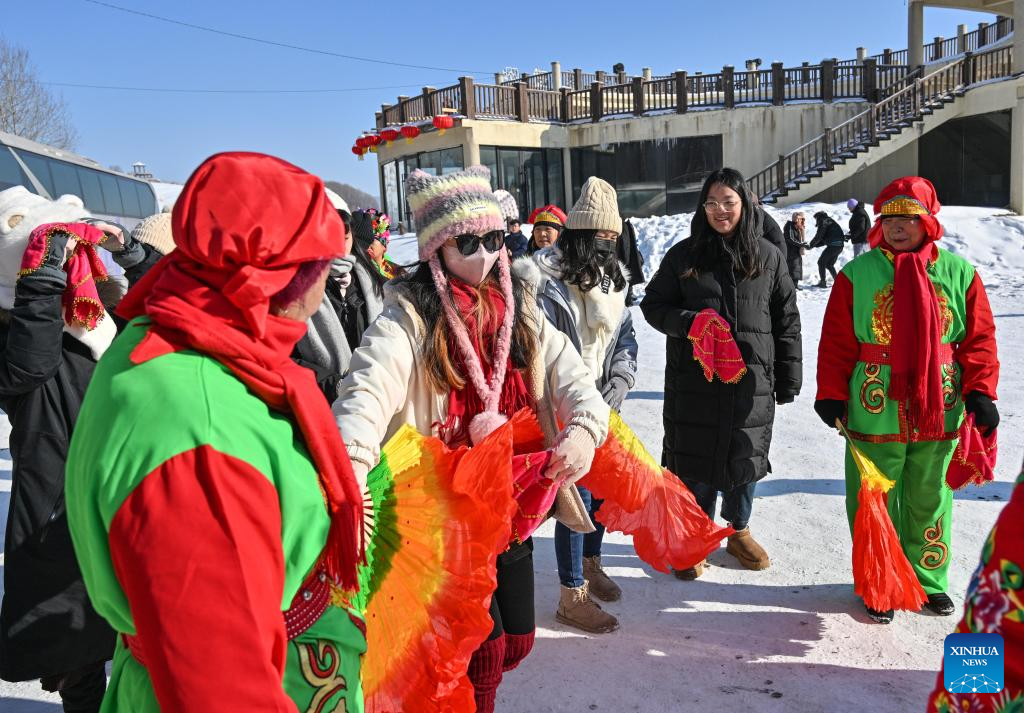 Taiwan students have fun on snow in Shulan, northeast China's Jilin Province on Jan. 26, 2024. (Xinhua/Chen Yehua)