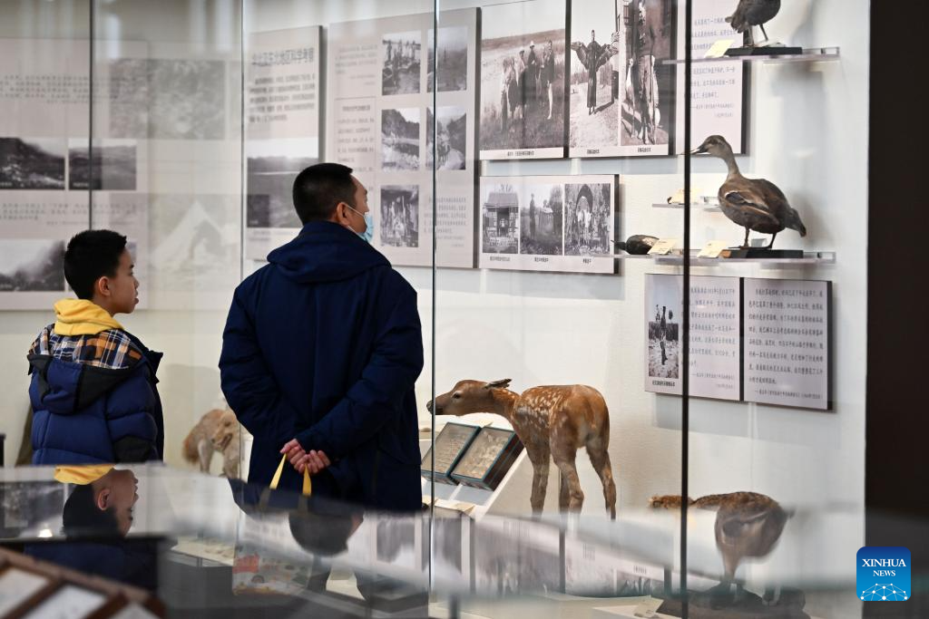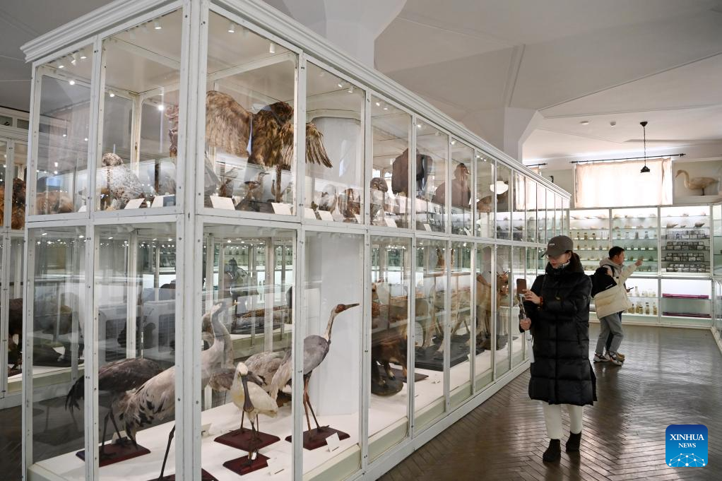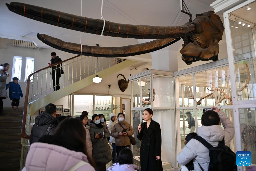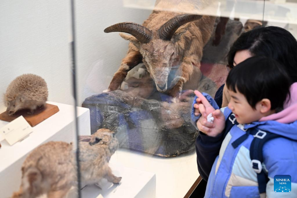 Tourists view animal specimens at the Beijiang Museum in north China's Tianjin Municipality, Jan. 27, 2024.?(Xinhua/Li Ran)