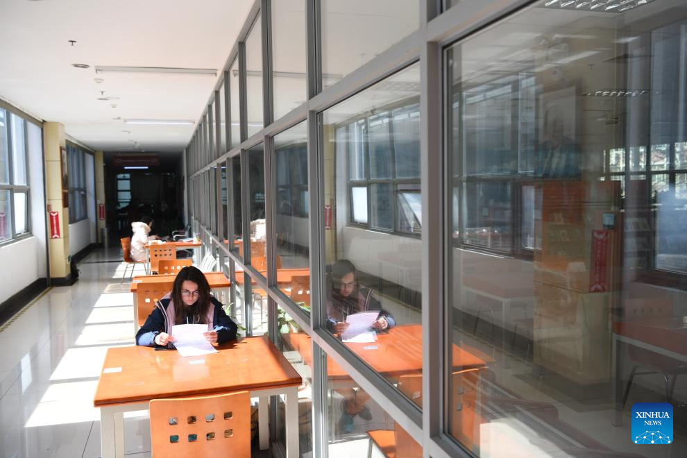 Deborah Bret studies in a library at Anhui Medical University, Hefei City, east China's Anhui Province, Jan. 23, 2024. Deborah Bret, a 21-year-old student from Lyon, France, majors in clinical medicine at Anhui Medical University. (Xinhua/Zhou Mu)