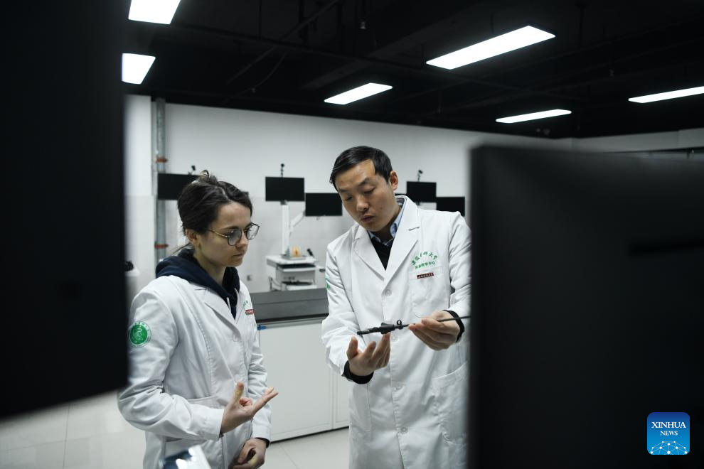 Deborah Bret (L) receives basic training of laparoscopic operation at Anhui Medical University, Hefei City, east China's Anhui Province, Jan. 23, 2024. Deborah Bret, a 21-year-old student from Lyon, France, majors in clinical medicine at Anhui Medical University. (Xinhua/Zhang Duan)