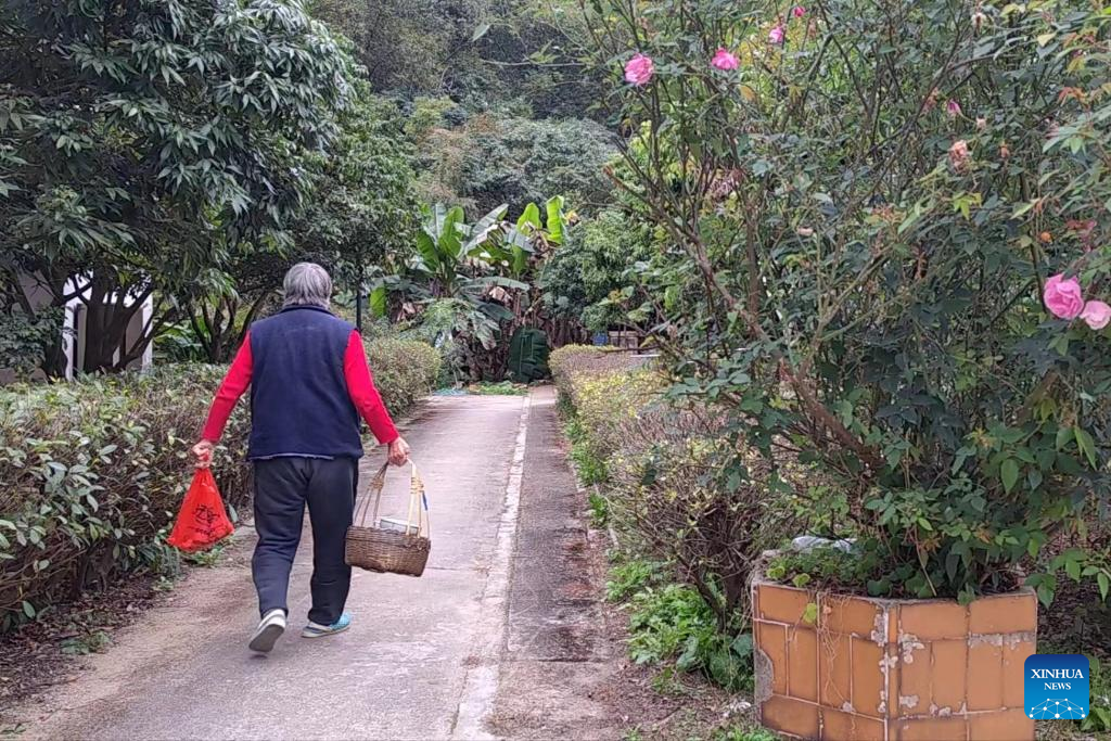 A leprosy convalescent goes back to dormitory with food at the rehabilitation center in Guangzhou, south China's Guangdong Province, Jan. 25, 2024. (Xinhua/Xu Hongyi)