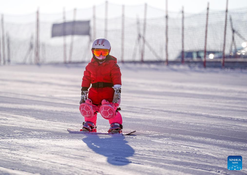 A child skis at Tianding Mountain Ski Resort in Changchun, northeast China's Jilin Province, on Jan. 25, 2024. Boasting abundant ice and snow resources, Jilin Province in northeast China continues to optimize its tourism service to gain prominence as one of the most popular winter destinations for tourists. (Xinhua/Chen Yehua)