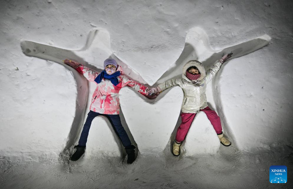 Tourists pose for photos at Changchun Ice and Snow New World in Changchun, northeast China's Jilin Province, Jan. 26, 2024. Boasting abundant ice and snow resources, Jilin Province in northeast China continues to optimize its tourism service to gain prominence as one of the most popular winter destinations for tourists. (Xinhua/Chen Yehua)