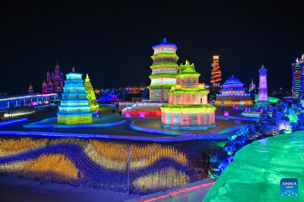 This photo taken on Jan. 26, 2024 shows a scene of Changchun Ice and Snow New World in Changchun, northeast China's Jilin Province. Boasting abundant ice and snow resources, Jilin Province in northeast China continues to optimize its tourism service to gain prominence as one of the most popular winter destinations for tourists. (Xinhua/Chen Yehua)