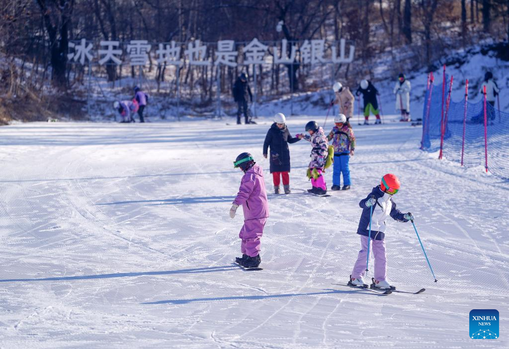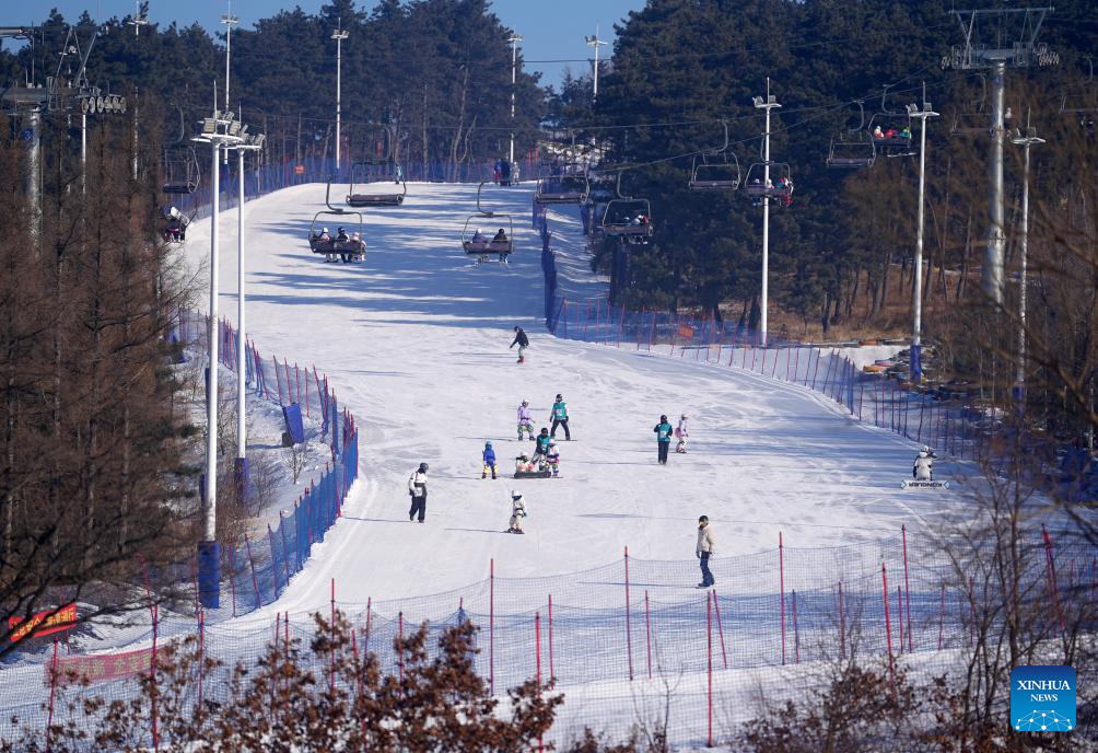 Ski enthusiasts are seen at Tianding Mountain Ski Resort in Changchun, northeast China's Jilin Province, on Jan. 25, 2024. Boasting abundant ice and snow resources, Jilin Province in northeast China continues to optimize its tourism service to gain prominence as one of the most popular winter destinations for tourists. (Xinhua/Chen Yehua)