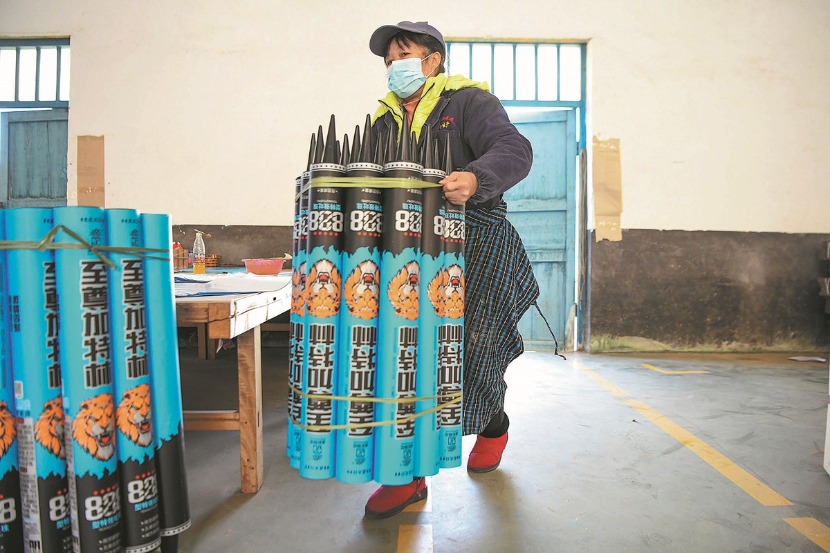 A worker carries fireworks made at a factory in the city. YANG HUAFENG/CHINA NEWS SERVICE