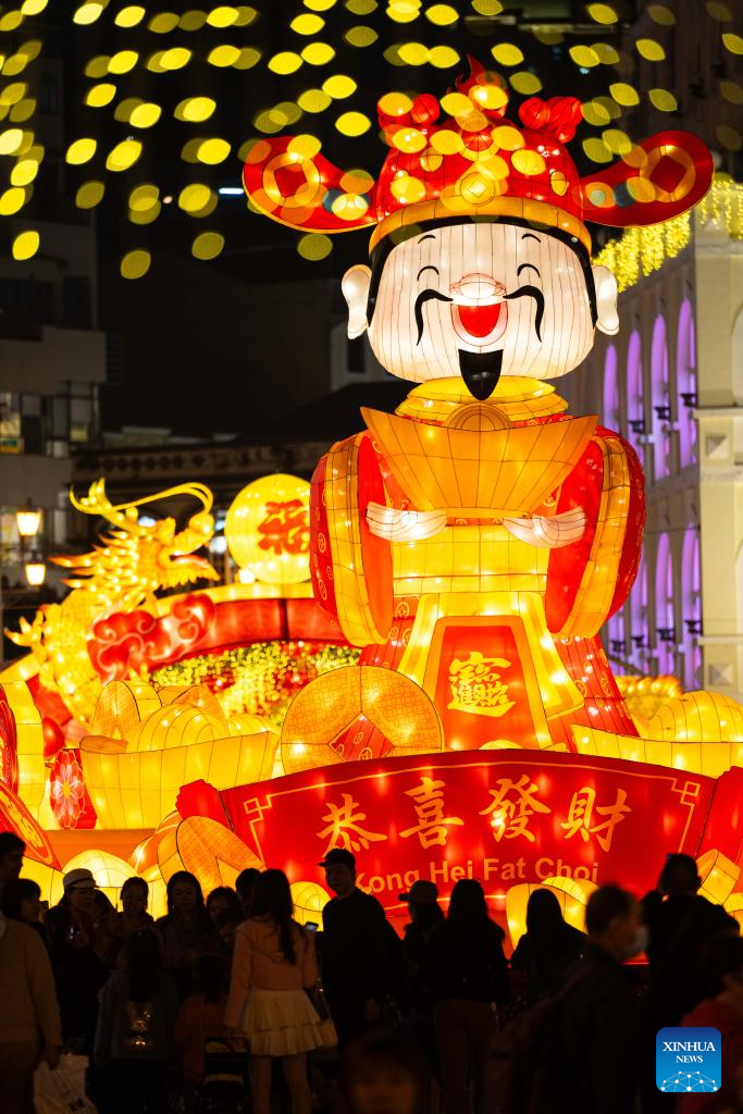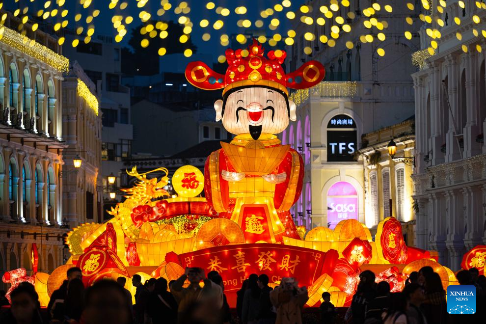 Light decorations are seen ahead of the Chinese Lunar New Year in south China's Macao, Jan. 29, 2024. (Xinhua/Cheong Kam Ka)