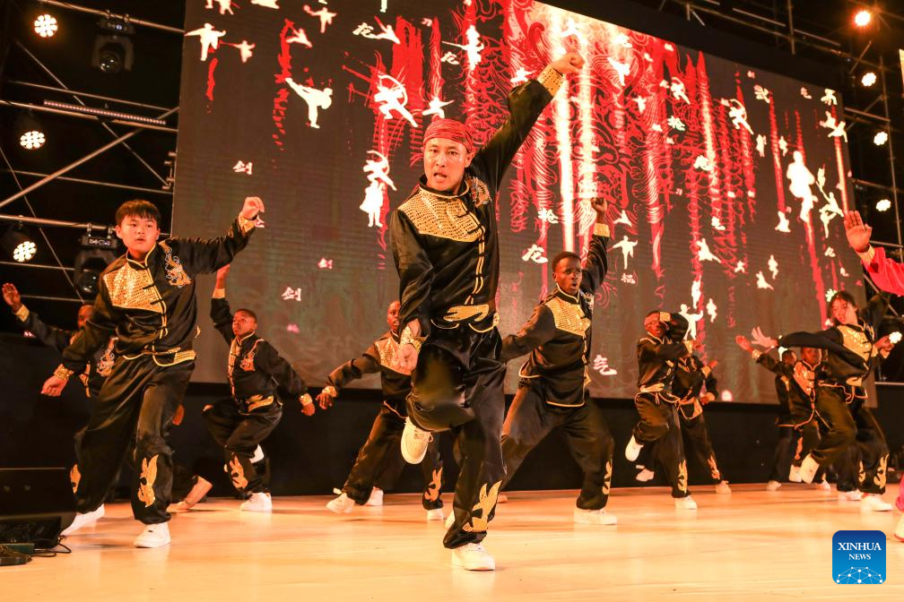Artists from China and Uganda perform at the Chinese New Year's eve gala in Kampala, Uganda, on Jan. 28, 2024. (Photo by Hajarah Nalwadda/Xinhua)