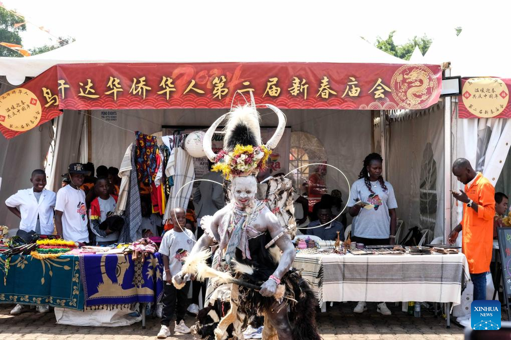 Thousands of Ugandans and the Chinese community thronged Kololo Independence Grounds in the Ugandan capital of Kampala for a "temple fair," a traditional cultural event that features all kinds of Chinese folk art, followed by a gala evening, to celebrate the upcoming Year of the Dragon, with the Spring Festival falling on Feb. 10 this year.