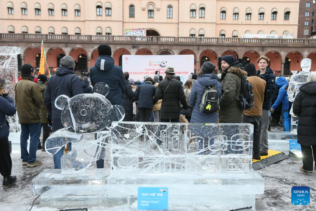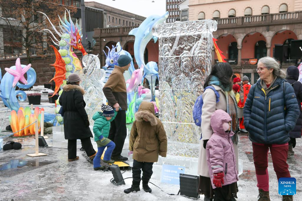 An exhibition featuring Chinese ice sculptures and lanterns opened in Oslo on Sunday, drawing crowds of visitors with Chinese culture set against Norwegian landscapes.