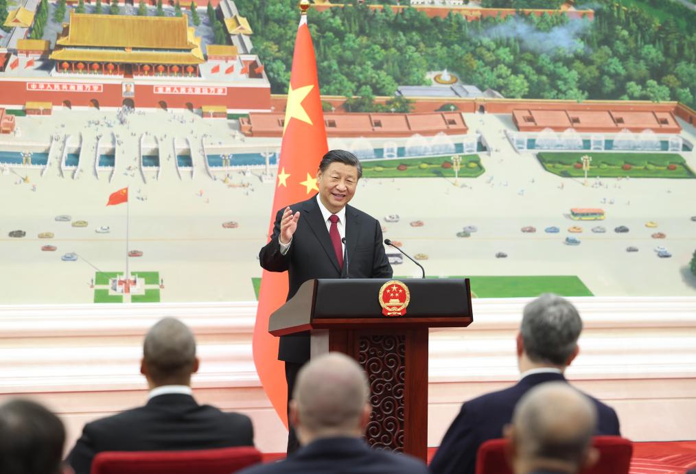Chinese President Xi Jinping delivers a speech after receiving the credentials of 42 ambassadors to China at the Great Hall of the People in Beijing, capital of China, Jan. 30, 2024. (Xinhua/Shen Hong)