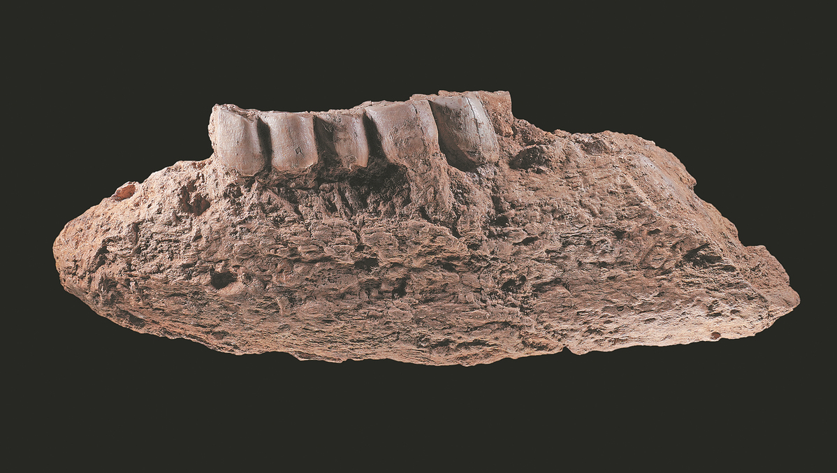The fossilized mandibular bone of a rhino, awls made of bones and scrapers are among the findings unearthed from the Paleolithic Mengxihe site. CHINA DAILY