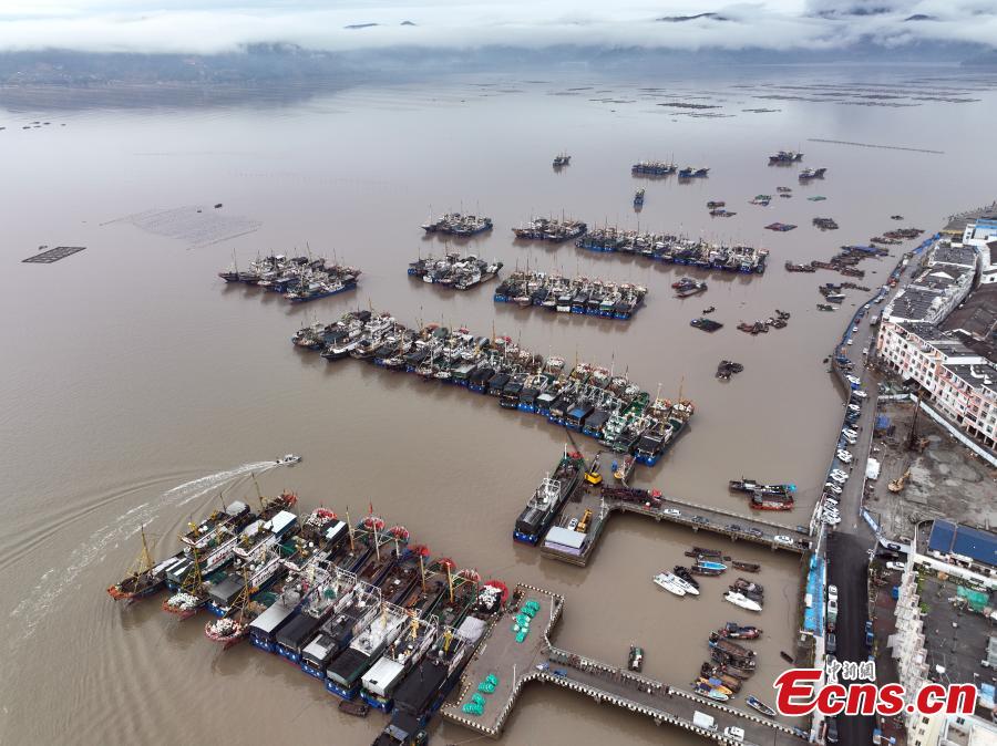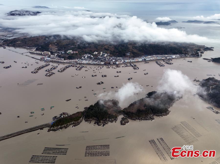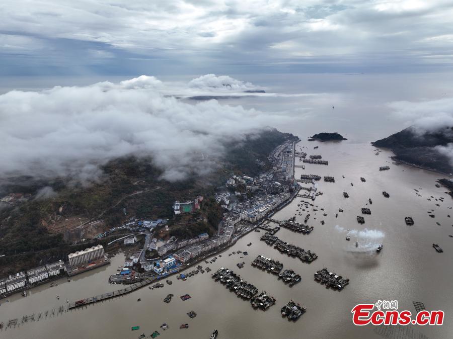 Seascape scenery with fishing boats mooring at Xiaguan port in Cangnan, east China's Zhejiang Province, Jan. 30, 2024. (Photo: China News Service/Mao Jianjun)