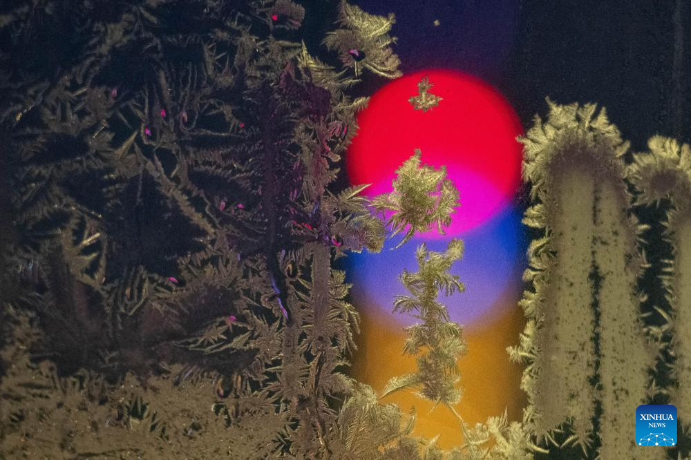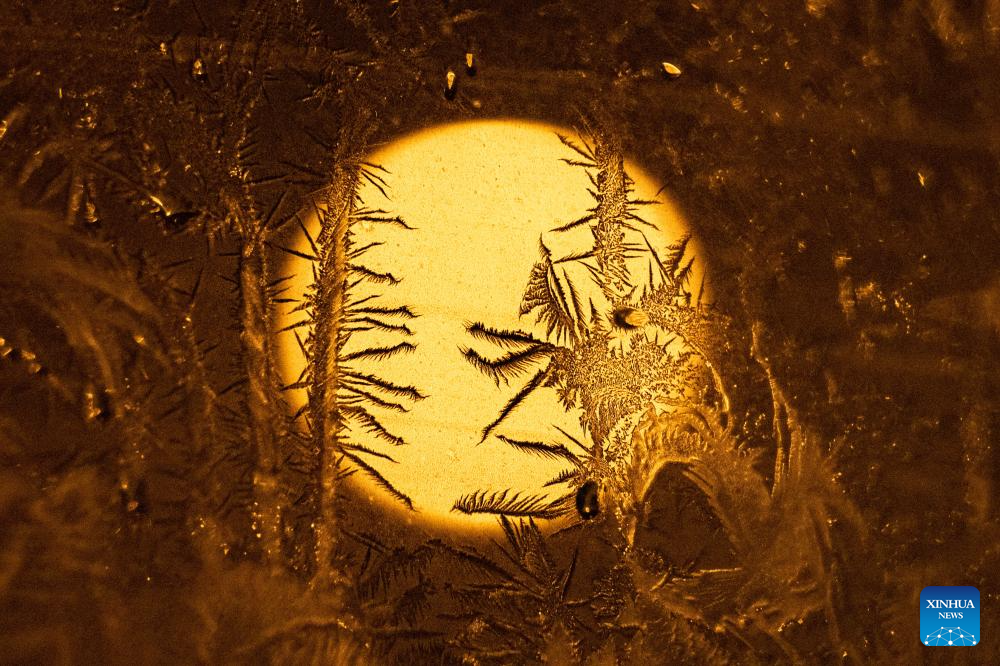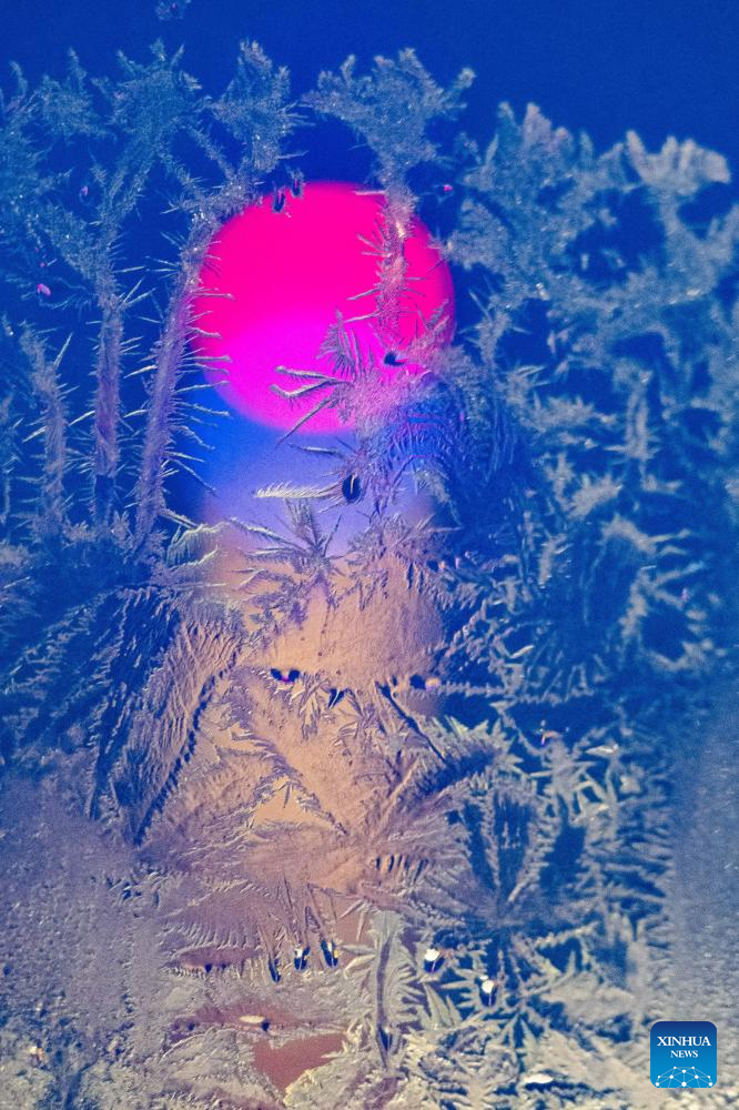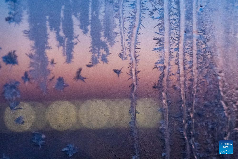 A window with frost pattern is pictured in Heihe, northeast China's Heilongjiang Province, Jan. 30, 2024. (Xinhua/Xie Jianfei)