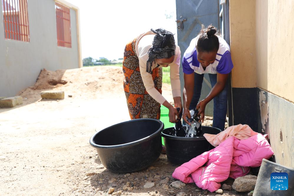 Residents in Arusha wash clothes with water provided by the Arusha new water supply system project undertaken by Power Construction Corporation of China, in Arusha, Tanzania, on Jan. 28, 2024. The water supply project includes laying over 620 km of steel pipelines, constructing 11 pools and connecting the water supply pipeline network to 48,000 households, according to PowerChina. (Xinhua/Hua Hongli)