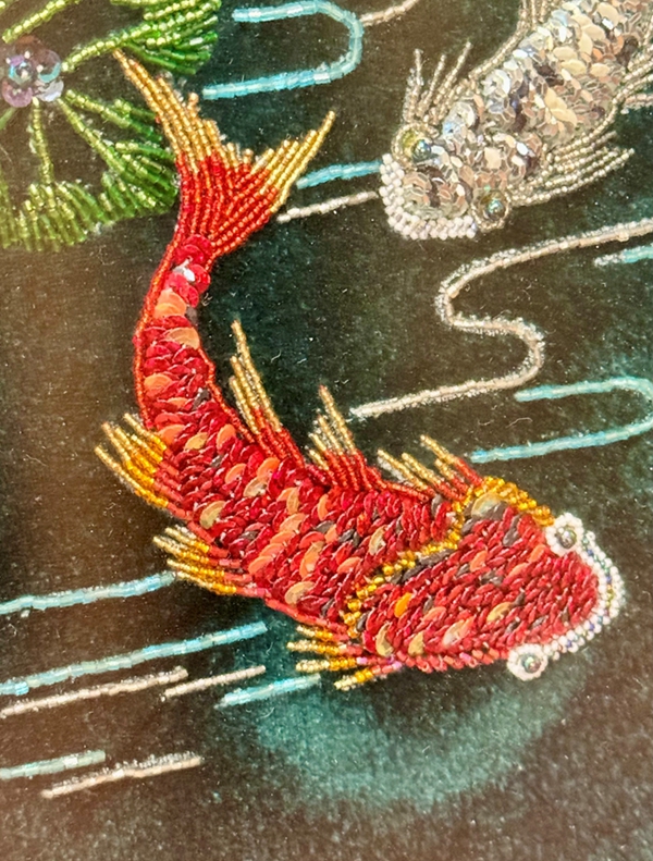 This photo, taken on Jan. 30, 2024, shows a Xiamen glass bead embroidery pattern, an art form recognized as China's intangible cultural heritage. (People's Daily Online/Wu Chaolan)