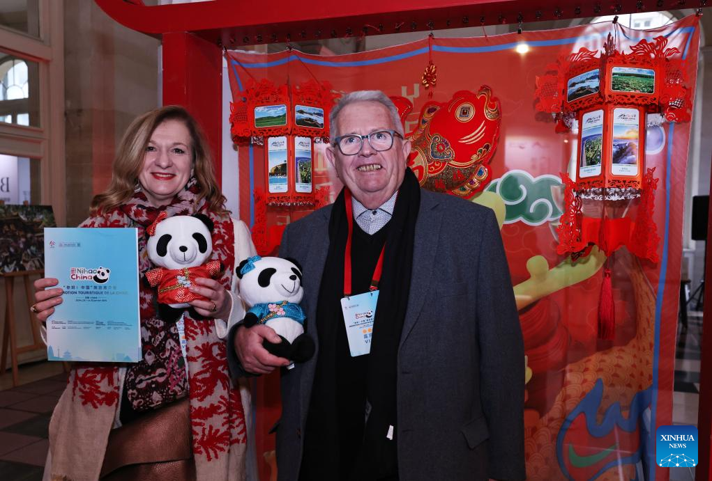 Visitors take part in a tourism promotion event named "Nihao! China" at the Paris Brongniart in Paris, France, Jan. 30, 2024. (Xinhua/Gao Jing)