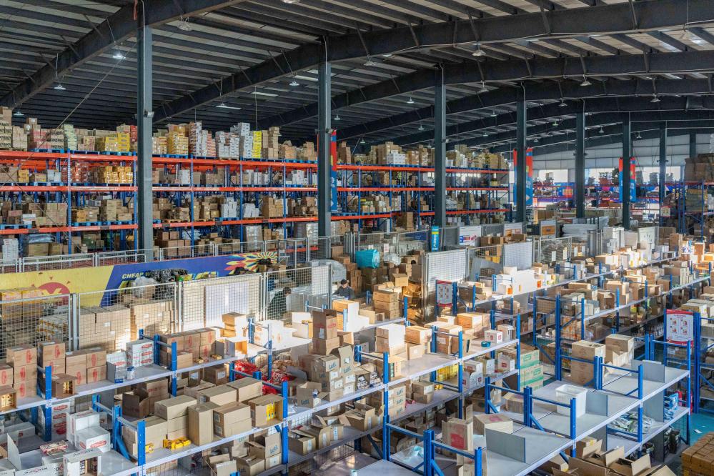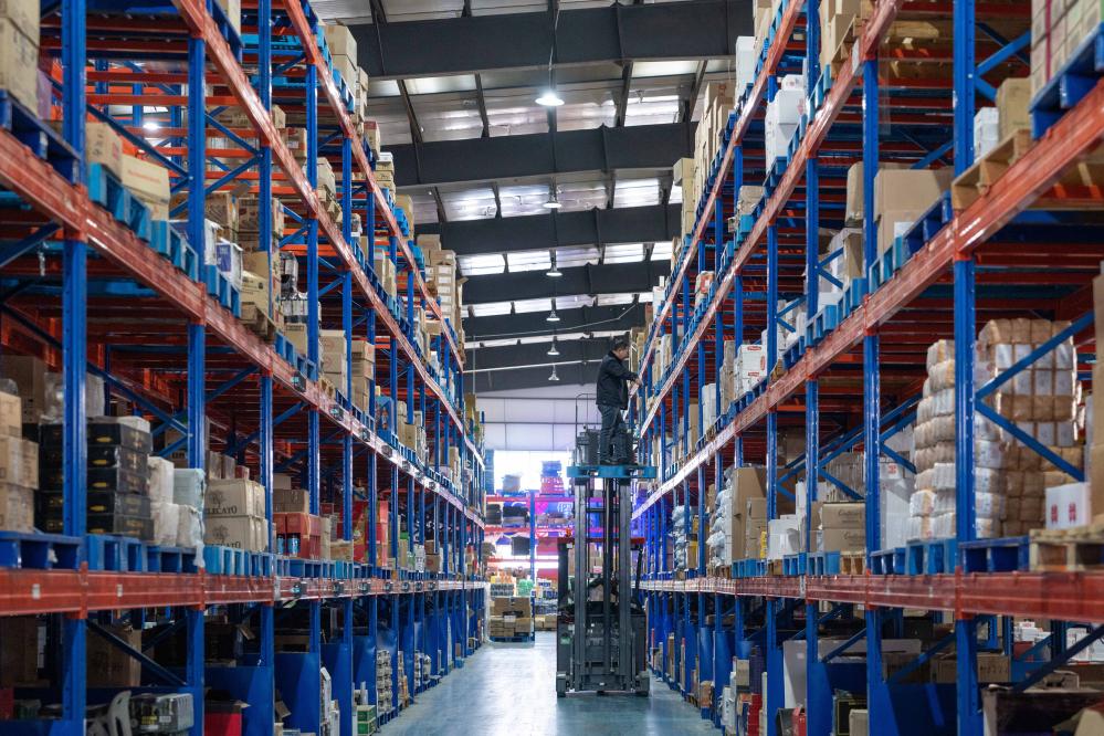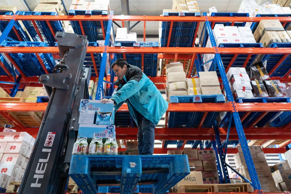 A staff member looks for goods at a logistics center in the Heihe Area of China (Heilongjiang) Pilot Free Trade Zone in Heihe, northeast China's Heilongjiang Province, Jan. 31, 2024. (Xinhua/Xie Jianfei)