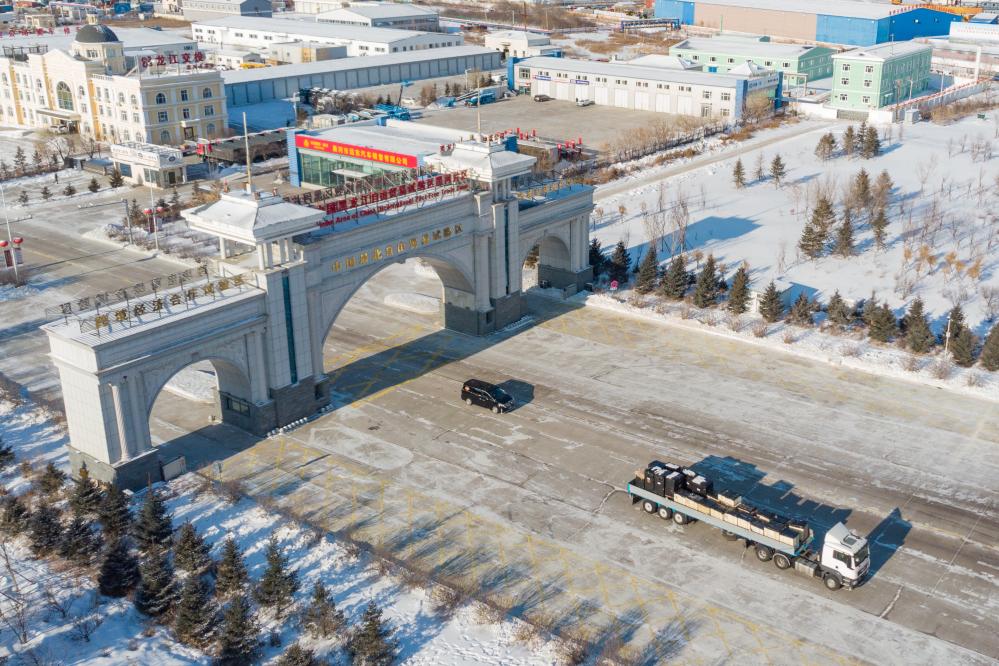 A logistics center is pictured in the Heihe Area of China (Heilongjiang) Pilot Free Trade Zone in Heihe, northeast China's Heilongjiang Province, Jan. 31, 2024. (Xinhua/Xie Jianfei)