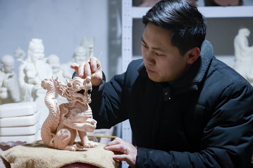 Baofeng county in central China's Henan Province boasts a long history of making Ru porcelain, one of the five famous porcelains of ancient China's Song Dynasty (960-1279). As the Year of the Loong – or Chinese dragon – approaches, skilled artisans from Baofeng county handcrafted Ru porcelains artworks featuring elements of the year sign.