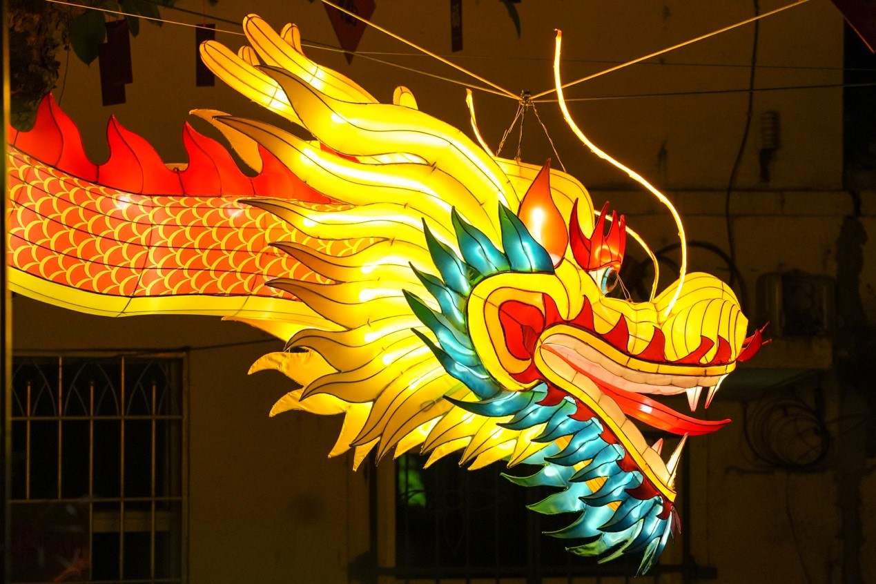 A dragon lantern is displayed on the street in Xiamen, southeast China's Fujian Province, Jan. 31, 2024. (People's Daily Online/Wu Chaolan)