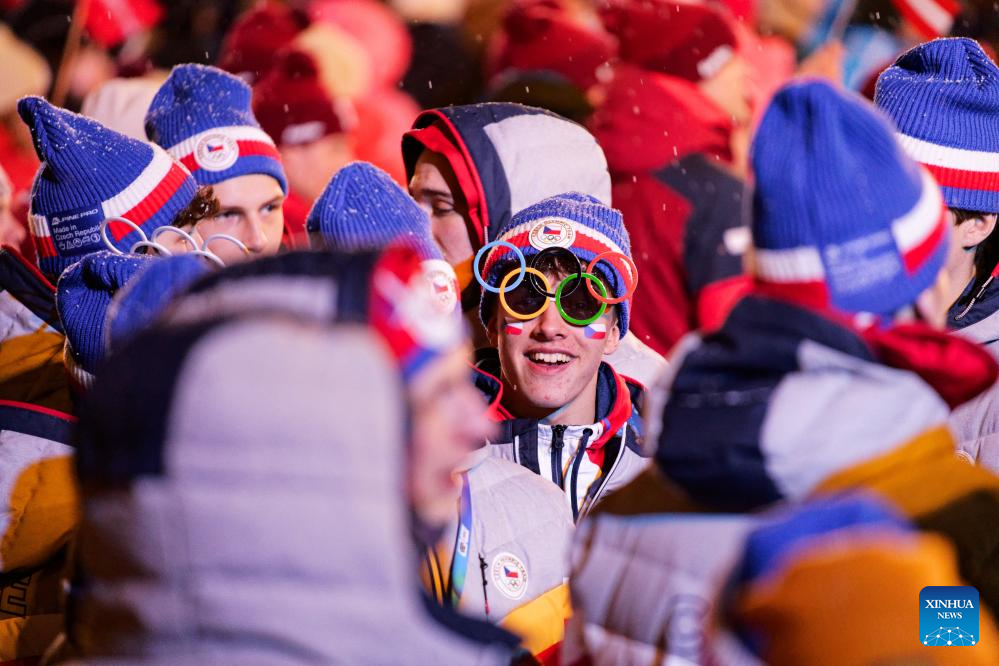 A member of the delegation of the Czech Republic is seen during the closing ceremony of Gangwon 2024 Winter Youth Olympic Games in Gangneung, Korea, Feb. 1, 2024. (Xinhua/Zhang Xiaoyu)