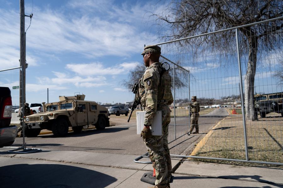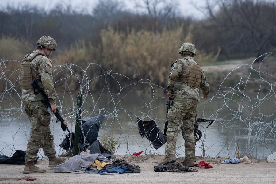 Members of the Texas National Guard are on duty at the U.S.-Mexico border in Eagle Pass, Texas, the United States, Feb. 1, 2024. (Xinhua/Liu Jie)