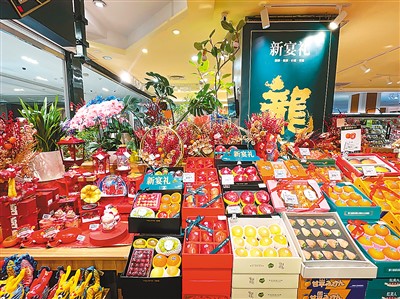 Photo shows a zone for Chinese New Year goods in a supermarket in Beijing. (Photo/Tang Min'an)