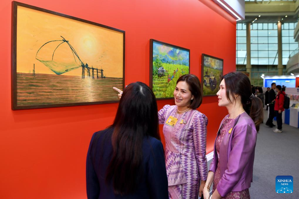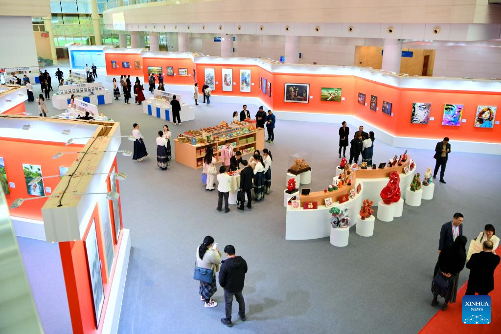 People visit an exhibition of ASEAN-China Year of People-to-People Exchanges, in Fuzhou, southeast China's Fujian Province, on Feb. 2, 2024. The launching ceremony of ASEAN-China Year of People-to-People Exchanges was held here on Friday. (Xinhua/Jiang Kehong)
