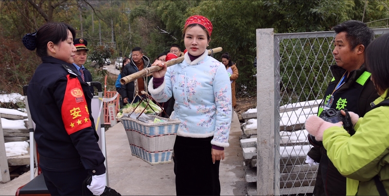 Villagers carrying farm produce and specialties for sale prepare to board a "slow train" in southwest China's Guizhou Province. (Photo/Zhou Jianguo)