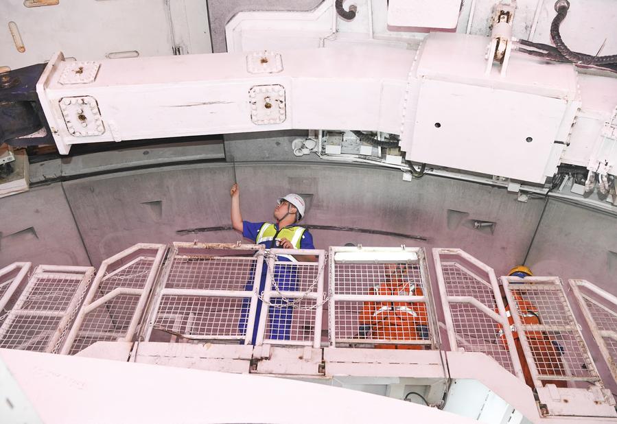 CHONGQING, Feb. 4 (Xinhua) -- Chongqing Yangtze River Tunnel project is a key project of the Chongqing-Qianjiang section of a high-speed railway linking Chongqing and central China's Hunan Province. With a total length of about 11.9 kilometers, it is the first high-speed railway tunnel to cross the Yangtze River using the shield-tunneling method.