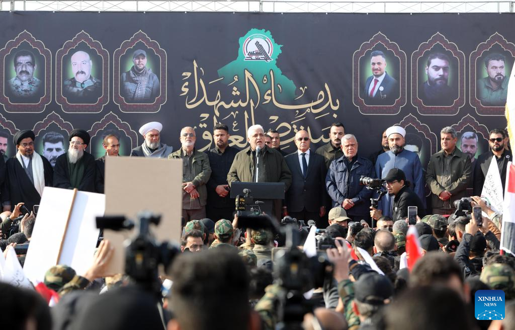 BAGHDAD, Feb. 4 (Xinhua) -- Falih al-Fayyadh, chairman of the Iraqi paramilitary Hashd Shaabi Forces, said Sunday that U.S. airstrikes on its bases in western Iraq were meant to weaken the group and stop it from protecting the country.