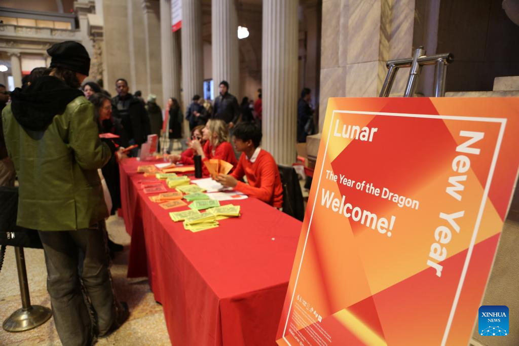 People visit a Lunar New Year celebration event at the Metropolitan Museum of Art in New York, the United States, on Feb. 3, 2024. (Xinhua/Zhang Fengguo)