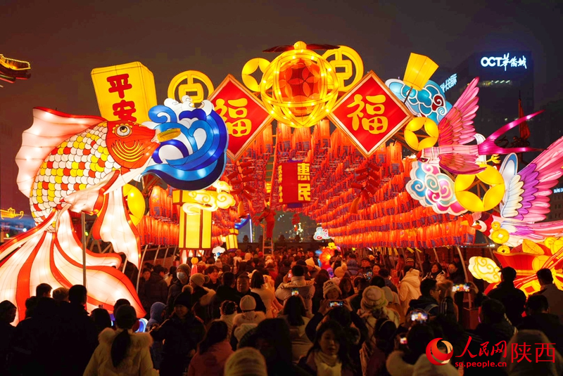 People visit a lantern show held to celebrate the upcoming Chinese Lunar New Year in Xi'an, capital of northwest China's Shaanxi Province. (People's Daily Online/Bai Ge)